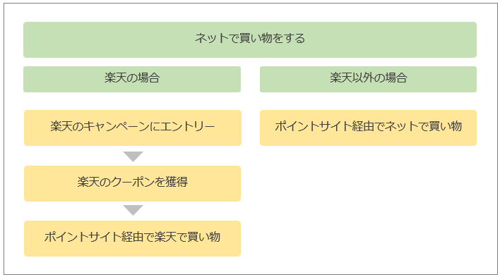 ネットで買い物をする際にポイントを稼ぐ流れは次のとおりです。